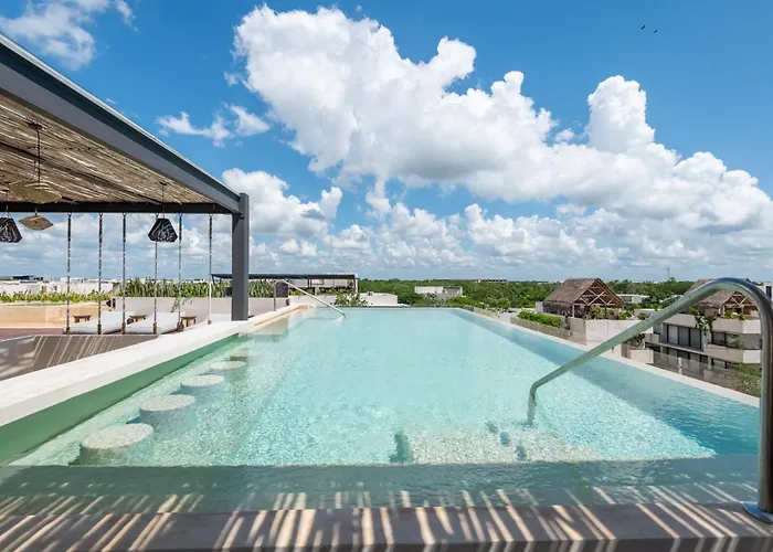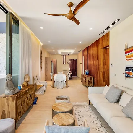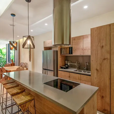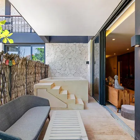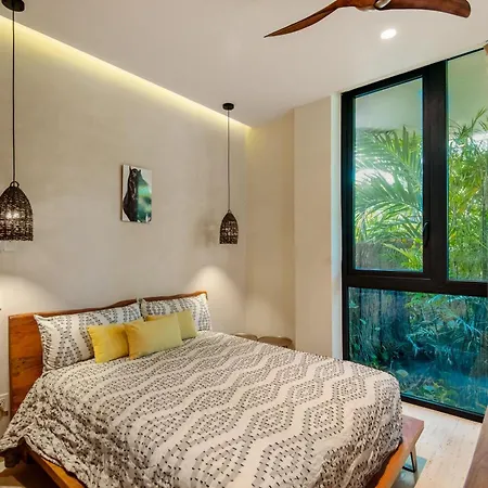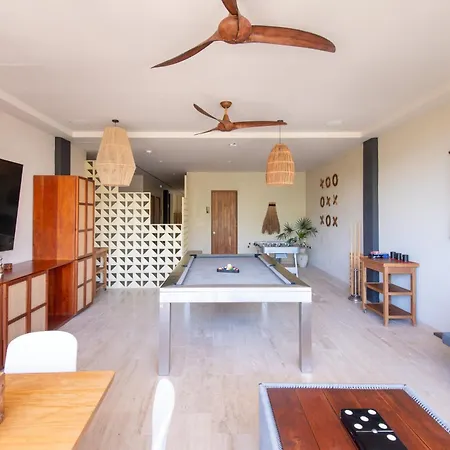 Offering a swimming pool, the spacious Modern Retreat With Private Garden And Jacuzzi Apartment Tulum is situated a 25-minute walk from the Casa de la Cultura. Guests can stay at this apartment with views of the inner courtyard, and with a hot tub and billiards available on site.